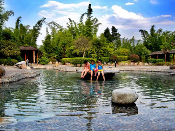 熱水溫泉,位于湘、粵、贛三省交界的熱水鎮(zhèn),是我國南方水溫最高,流量最大,水質(zhì)最好,熱田面積最寬的天然溫泉。熱水水溫一般為 91.5℃,最高達(dá)98℃。熱泉水無色透明,稍有硫化氫氣味,為低礦化、低硬度、高溫弱堿性重碳酸、硫酸-鈉型氟及硅質(zhì)礦泉水,含硅、鈉、鉀、鈣、鍶、硼、氟、氡等三十多種對人體有益的元素。其中“氡”元素正常情況含量30IMA即可做為生殖系統(tǒng)輔助治療藥物,根據(jù)聯(lián)合國教科文組織官員實(shí)地考察,福泉山莊熱泉水“氡”含量達(dá)到了130IMA左右,對治療不孕不育的生殖系統(tǒng)疾病有較好的輔助治療效果。