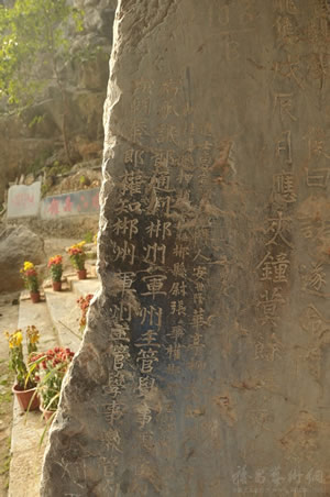 萬(wàn)華巖摩崖石刻群 位于郴州市北湖區(qū)萬(wàn)華巖鎮(zhèn)萬(wàn)華巖國(guó)家級(jí)風(fēng)景名勝區(qū)內(nèi)。萬(wàn)華巖洞內(nèi)留下了大量的宋代、清代石刻。其中立于清咸豐十年(1860)三月的《坦山萬(wàn)華巖敘》碑,高1.5米,寬1.0米,厚0.3米,碑文800字,楷書,字跡清晰。記載了太平軍攻入郴州和退出郴州的時(shí)間、地點(diǎn)及當(dāng)年太平軍犯郴及當(dāng)?shù)匕傩盏挚沟那闆r。