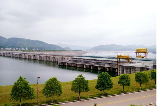 大壩的西面,是水利發(fā)電站,電站共有4臺機組,年發(fā)電量已達(dá)到5.56億千瓦小時。船閘座落在大壩的東側(cè),一次可通行二艘千噸級輪駁船隊。