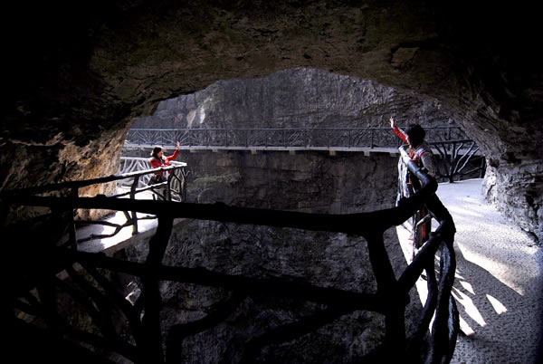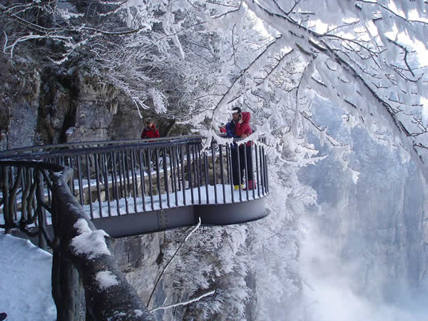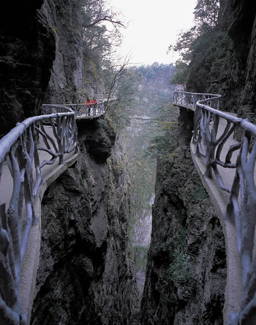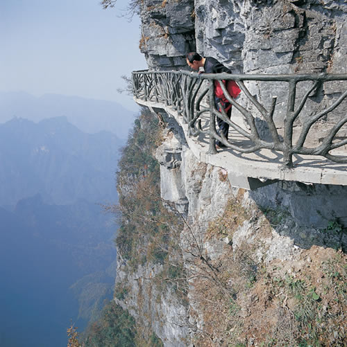 據(jù)施工人員介紹,此條棧道也是他們所修棧道中施工最難,最險(xiǎn)峻的一條。如果您還覺(jué)得不夠刺激的話,在棧道的完結(jié)處的兩個(gè)懸崖之間有一條長(zhǎng)160米的懸索吊橋,同時(shí),在海拔最高點(diǎn)還有一個(gè)挑戰(zhàn)心里極限的玻璃站臺(tái),在這里,如果你能挺直腰板伸開雙臂,那么,您就是真正的勇士了。