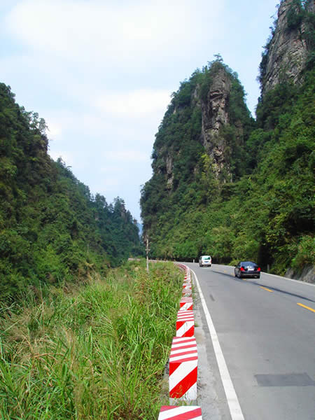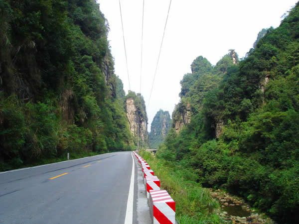 百丈峽圖片 百丈峽是武陵源風(fēng)景名勝區(qū)通往張家界市的公路貫通整個(gè)峽谷,因有堵高近百丈的石壁,直插云霄,不敢仰視,故而得名。據(jù)《慈利縣志》載,索溪峪右得百丈峽,峽長三十公里……又相傳向王天子起義軍與官兵在此先后博殺一百仗,依此又名百仗峽。明代九永兵備胡桂芳,一生好游歷山川,來到百丈峽后題寫了一首七言詩:“峽高百丈洞云深,要識桃源此處尋;戎旅徐行風(fēng)雪緊,誰將興盡類山蔭!笨逃趰{內(nèi)道旁石壁上。