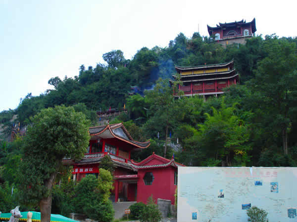 紫霞觀 紫霞觀始建于明朝嘉靖年間,近500年的歷史,在戰(zhàn)亂時(shí)期收到不同程度的破壞。紫霞觀是1992年因旅游事業(yè)的發(fā)展,教徒的信教,經(jīng)政府的批準(zhǔn),由各地的善男信女共同捐資,當(dāng)?shù)卣畵芸顢U(kuò)建起來(lái)的。道觀共有大小殿廟30余座,計(jì)5殿、3宮、2亭、2廟、1閣、八仙山、仙人足跡石、中華同心鎖等景點(diǎn)。中國(guó)著名書法家沈鵬先生為紫霞觀題寫了觀名,觀內(nèi)有國(guó)內(nèi)外著名書法家的題詞、碑刻等宗教文物,以及老子教祖講經(jīng)說(shuō)法渡化圖一百余幅。