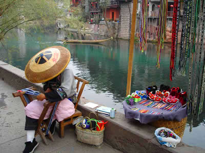 。是土家姑娘在直紋平布上,按照布紋的經緯和預先繪畫的花樣與底色不同的絲線繡成圖案。舊時姑娘們穿的繡花衣服,繡有服飾花邊、胸花、帽花,此外繡花枕頭、繡花荷包等也是精巧的手工工藝品。土家刺繡在配色上有自己的講究與習慣,一般選用青、藍、大紅等深色布料作底布,用淺色繡線制作圖案,或者相反,兩種用法的結果使繡品顯得質樸逼真,色澤鮮艷,對比強烈。傳統(tǒng)圖案有“花開富貴”、“龍鳳呈祥”、“鴛鴦戲水”、“喜鵲鬧梅”、“松鶴同壽”等,分室內、衣著、工具、行李裝飾等多種種類。在景區(qū),土家婦女邊繡邊賣的精美鞋墊,深受海內外游客喜愛。