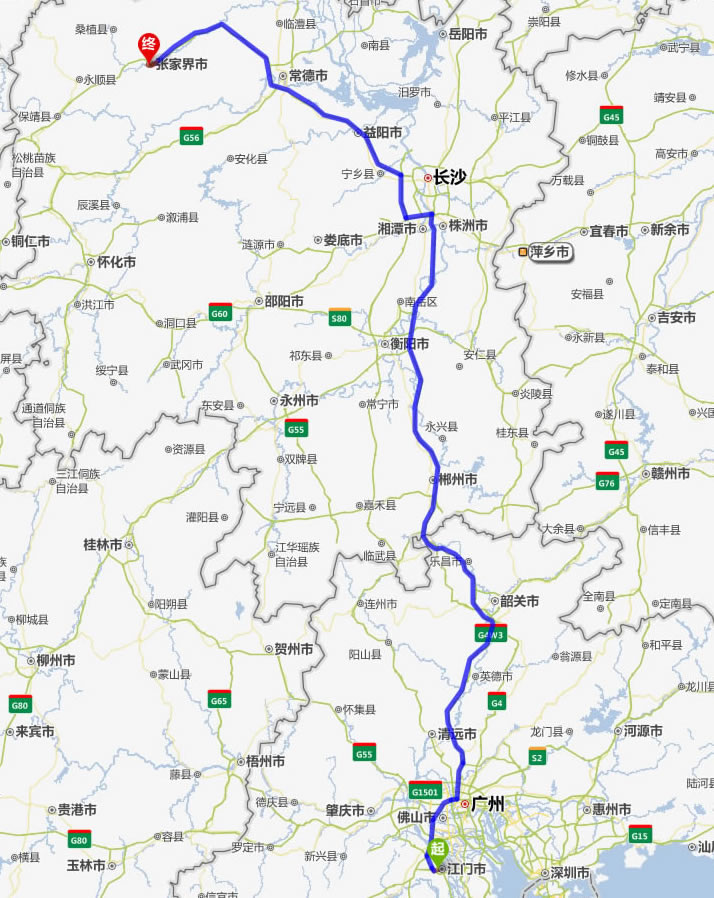 現(xiàn)在位置:張家界旅行社->交通指南->自駕車(chē)路線 -> 江門(mén)到張家界旅游自駕車(chē)線路_江門(mén)去張家界自駕車(chē)要多長(zhǎng)時(shí)間_有多少公里