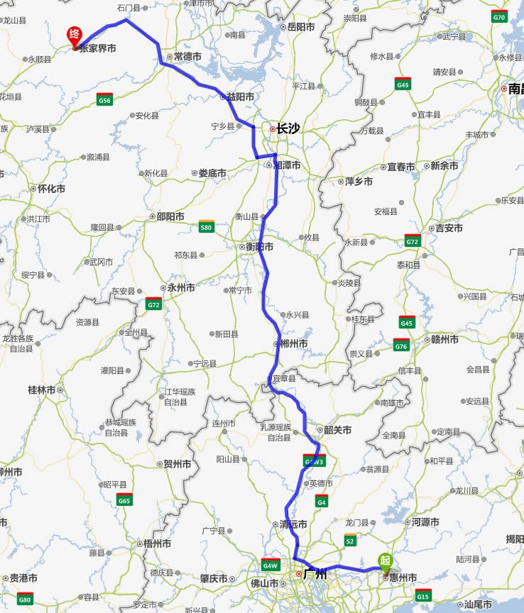現(xiàn)在位置:張家界旅行社->交通指南->自駕車路線 -> 云浮到張家界旅游自駕車線路,云浮去張家界自己開車要多長時(shí)間,有多少公里