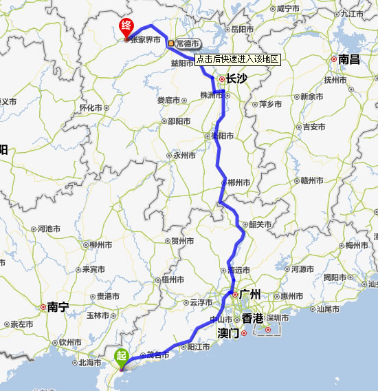 現(xiàn)在位置:張家界旅行社->交通指南->自駕車路線 -> 湛江到張家界旅游自駕車線路,湛江去張家界自己開車要多長時間,有多少公里