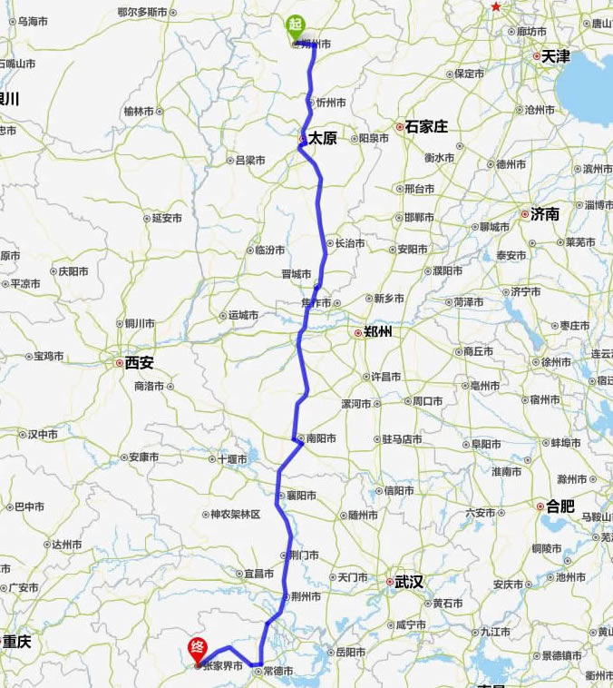 現(xiàn)在位置:張家界旅行社->交通指南->自駕車路線 -> 朔州到張家界旅游自駕車線路-朔州去張家界自己開(kāi)車要多長(zhǎng)時(shí)間,有多少公里