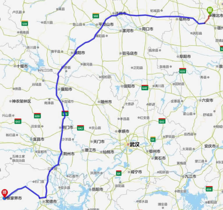 淮北去張家界自駕車自助游線路圖全程高速):