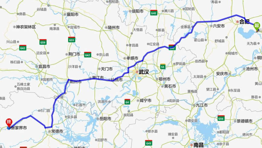 巢湖去張家界自駕車(chē)自助游線路圖全程高速):