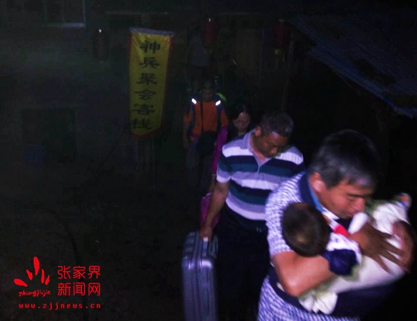 晚上9時許,由天子山景區(qū)管委會干部職工、居委會居民組成的應(yīng)急隊(duì)伍冒雨趕到老屋場,對入住游客和當(dāng)?shù)鼐用褚灰贿M(jìn)行耐心解釋,勸導(dǎo)他們連夜轉(zhuǎn)移到安全地帶。