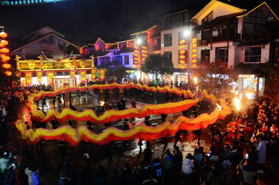 世界最長香火龍“閃亮”張家界溪布老街