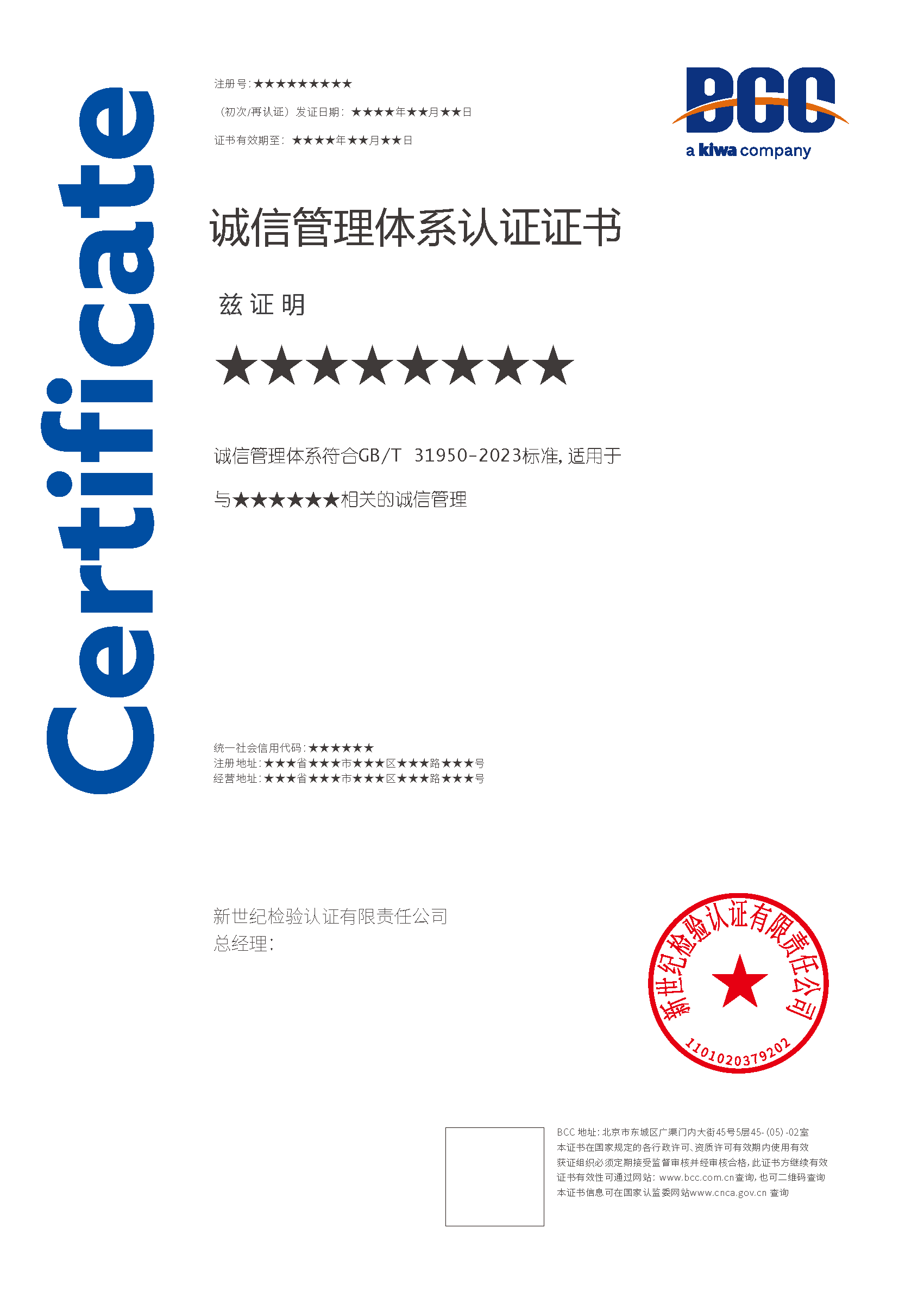 本頁(yè)涉及的認(rèn)證服務(wù)中均有對(duì)應(yīng)的《認(rèn)證實(shí)施規(guī)則》,BCC擁有其最終解釋權(quán)。任何組織及個(gè)人未經(jīng)BCC許可,不得以任何形式全部或部分使用(法律要求除外)認(rèn)證相關(guān)信息。如需獲取相關(guān)實(shí)施規(guī)則請(qǐng)用以下方式聯(lián)系獲?。弘娫挘?10-58579316 郵箱:fwjs@kiwa.cn