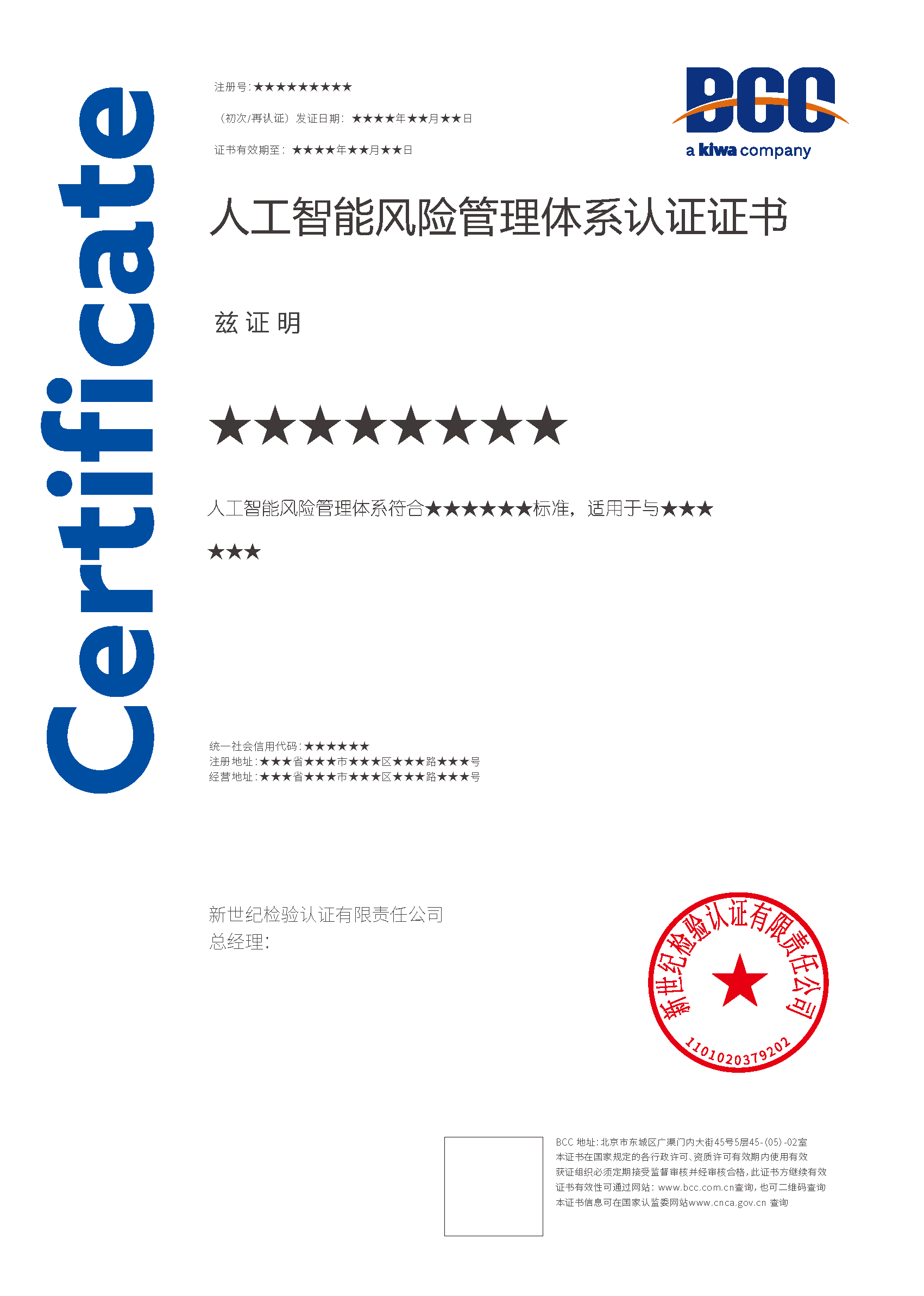 本頁涉及的認(rèn)證服務(wù)中均有對(duì)應(yīng)的《認(rèn)證實(shí)施規(guī)則》,BCC擁有其最終解釋權(quán)。任何組織及個(gè)人未經(jīng)BCC許可,不得以任何形式全部或部分使用(法律要求除外)認(rèn)證相關(guān)信息。如需獲取相關(guān)實(shí)施規(guī)則請(qǐng)用以下方式聯(lián)系獲?。弘娫挘?10-58579316 郵箱:fwjs@kiwa.cn