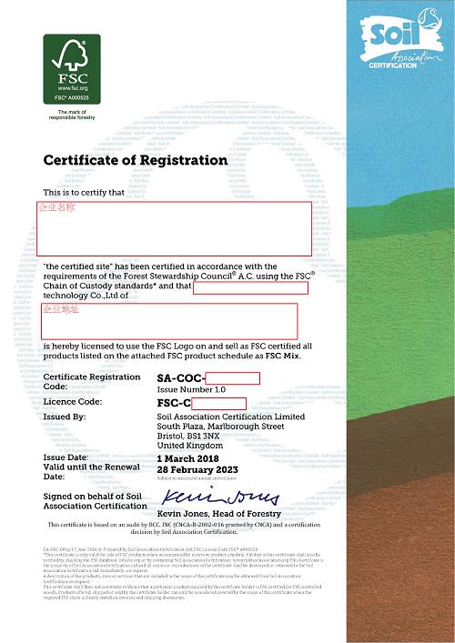 Kiwa BCC已經(jīng)獲得英國土壤協(xié)會(huì)SA授權(quán),可在中國開展FSC®產(chǎn)銷監(jiān)管鏈認(rèn)證(FSC® N001893)和PEFC產(chǎn)銷監(jiān)管鏈認(rèn)證。同時(shí),可為組織提供CFCC產(chǎn)銷監(jiān)管鏈認(rèn)證服務(wù)。
