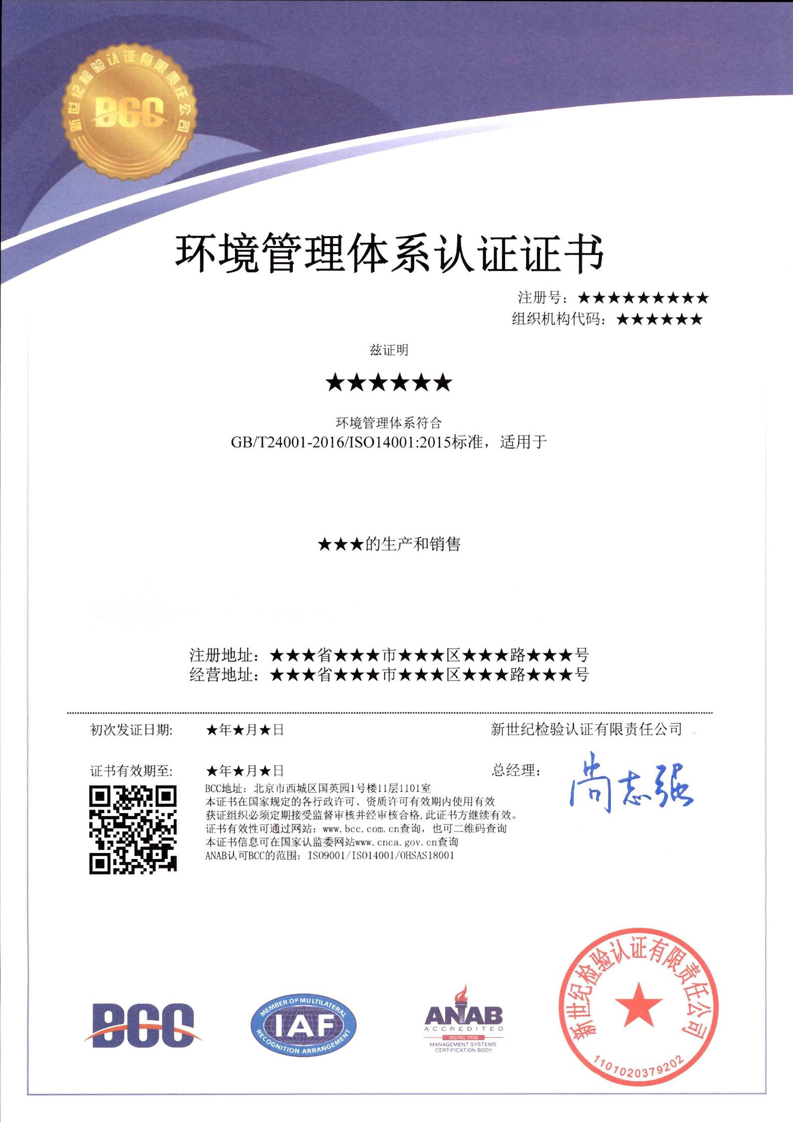 | 環(huán)境管理證書(shū)(ANAB+IAF) | 環(huán)境管理證書(shū)(CNAS+IAF) |